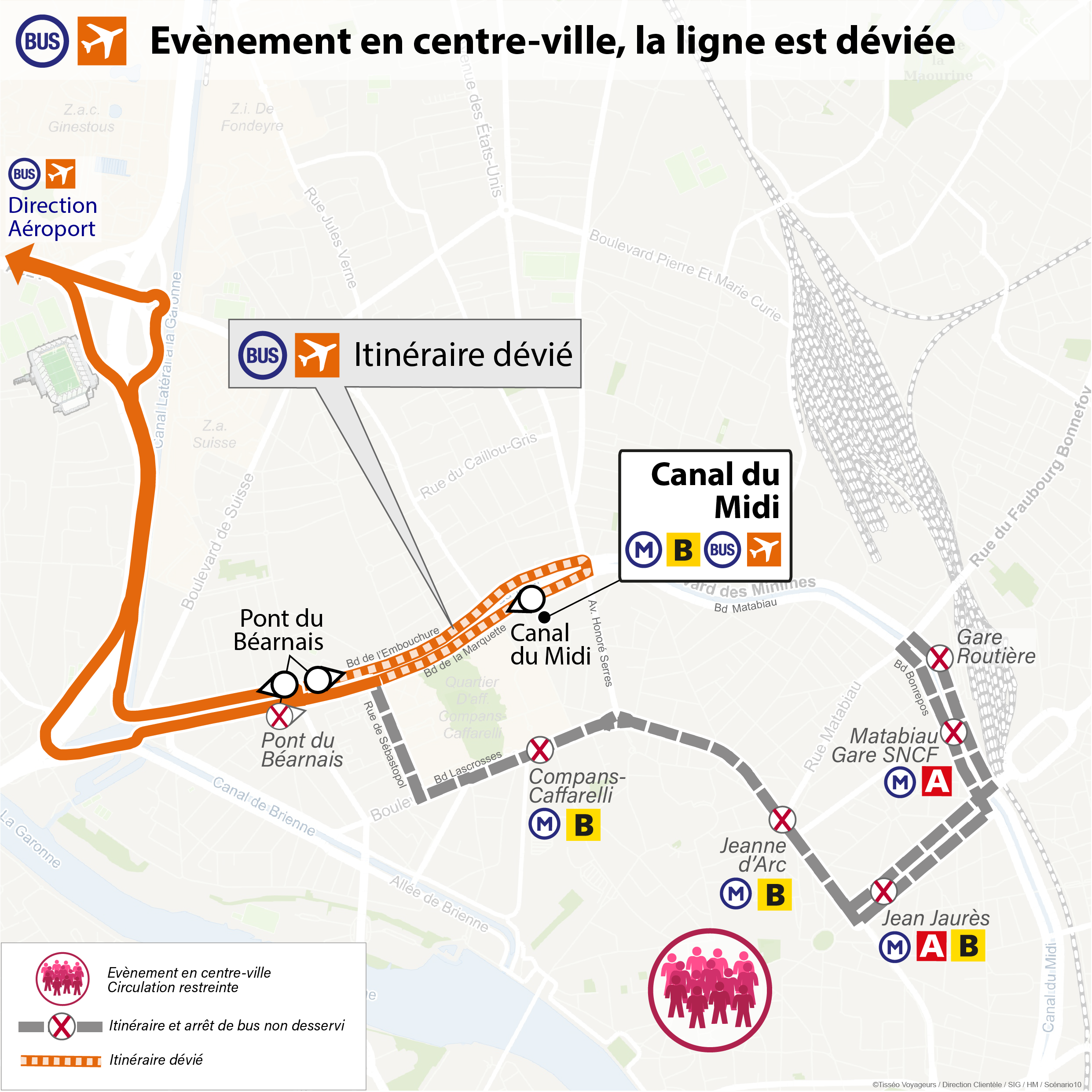 Le terminus Gare Routière reporté à l'arrêt Canal Du Midi (correspondance ligne B du métro).
