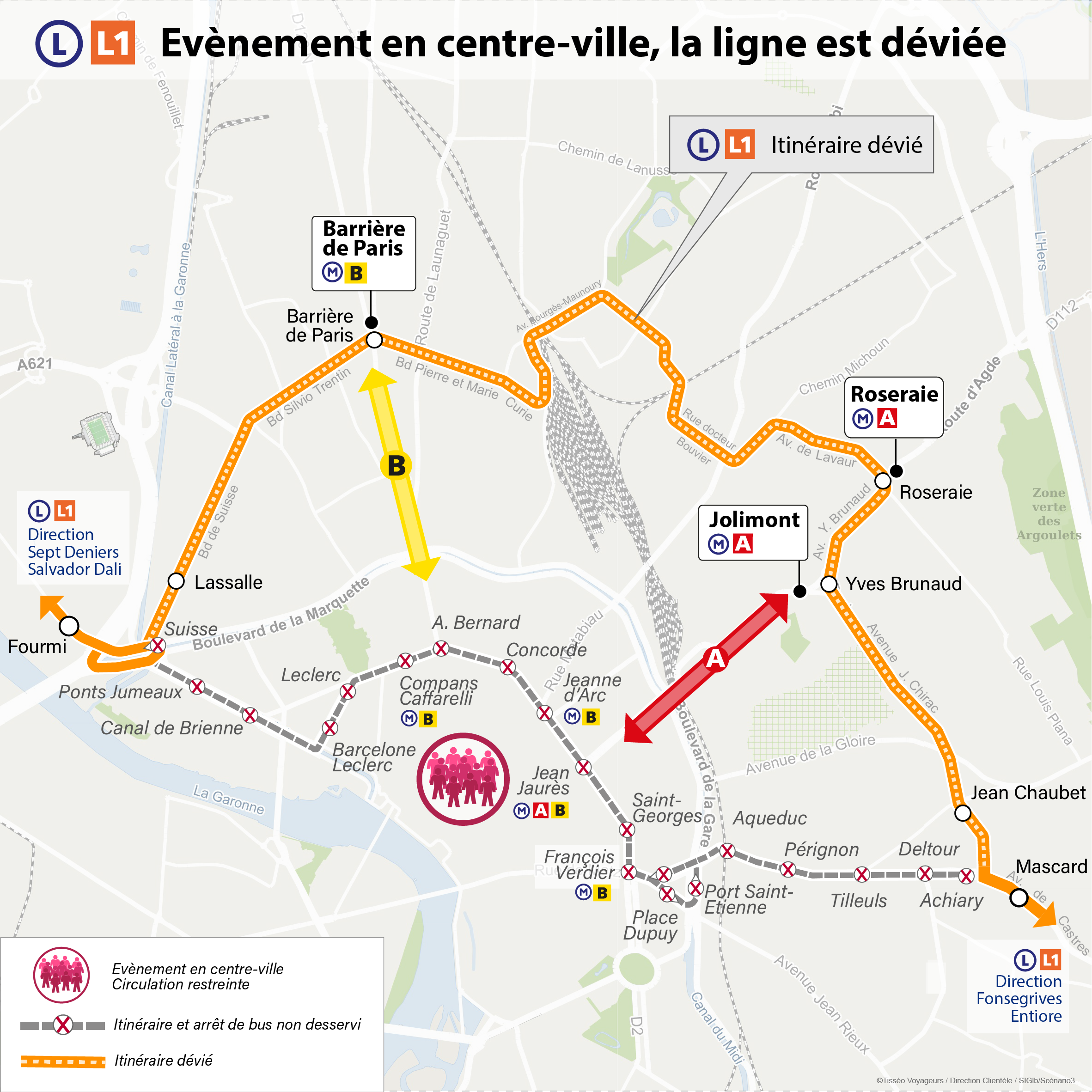 Le samedi 29 novembre à partir de 13h30 : déviation ligne L1.