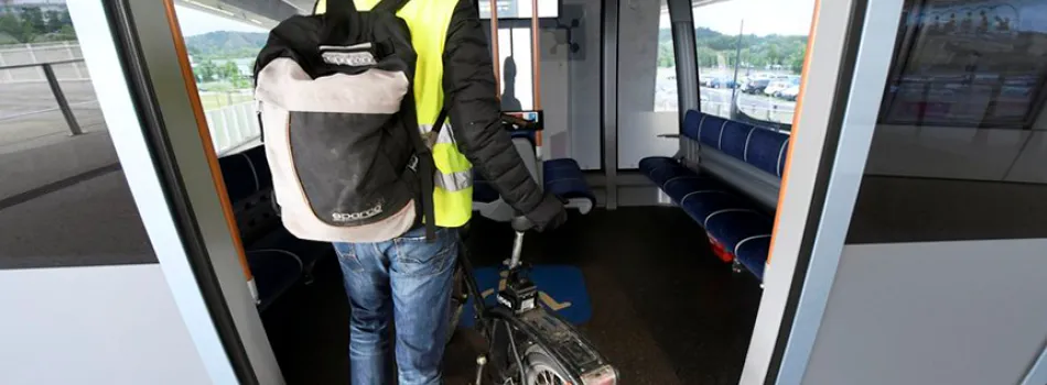Votre trottinette doit être pliée à bord du bus ou de la rame et dès l'arrivée dans la station de métro.
