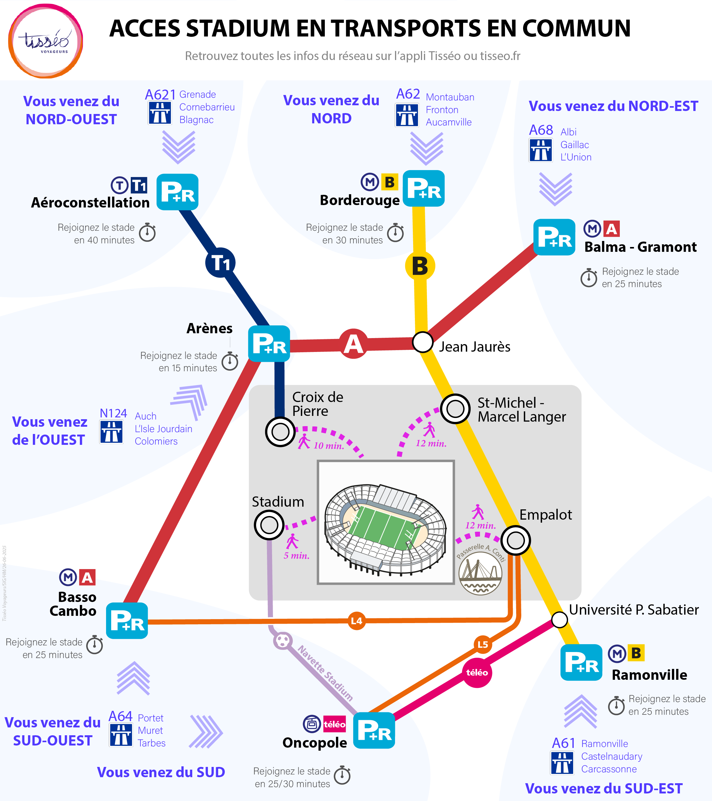 Après la fin du match, le retour vers Oncopole est assuré pendant 1 heure.