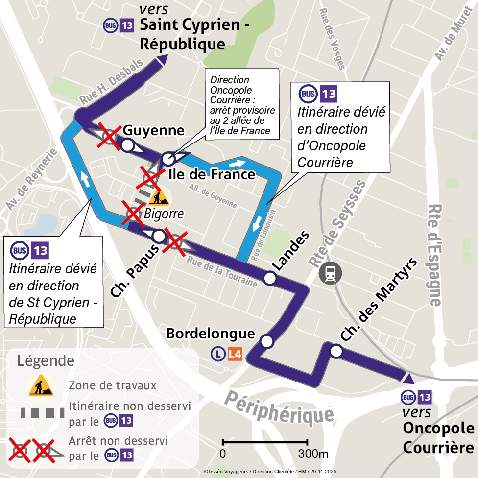 Du lundi 24 novembre au vendredi 19 décembre 2025 : déviation ligne 13.