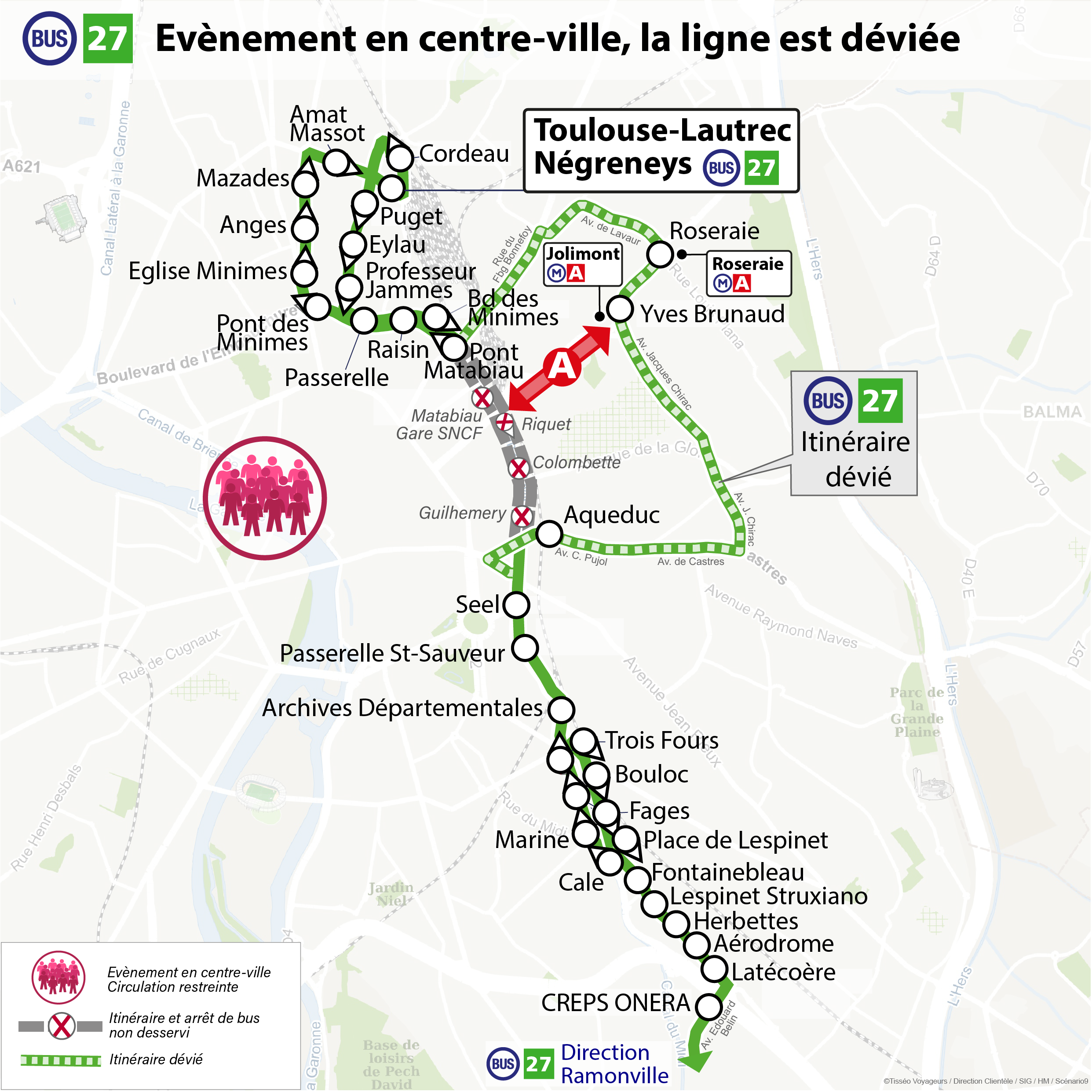 Le samedi 29 novembre à partir de 13h30 : déviation ligne 27.