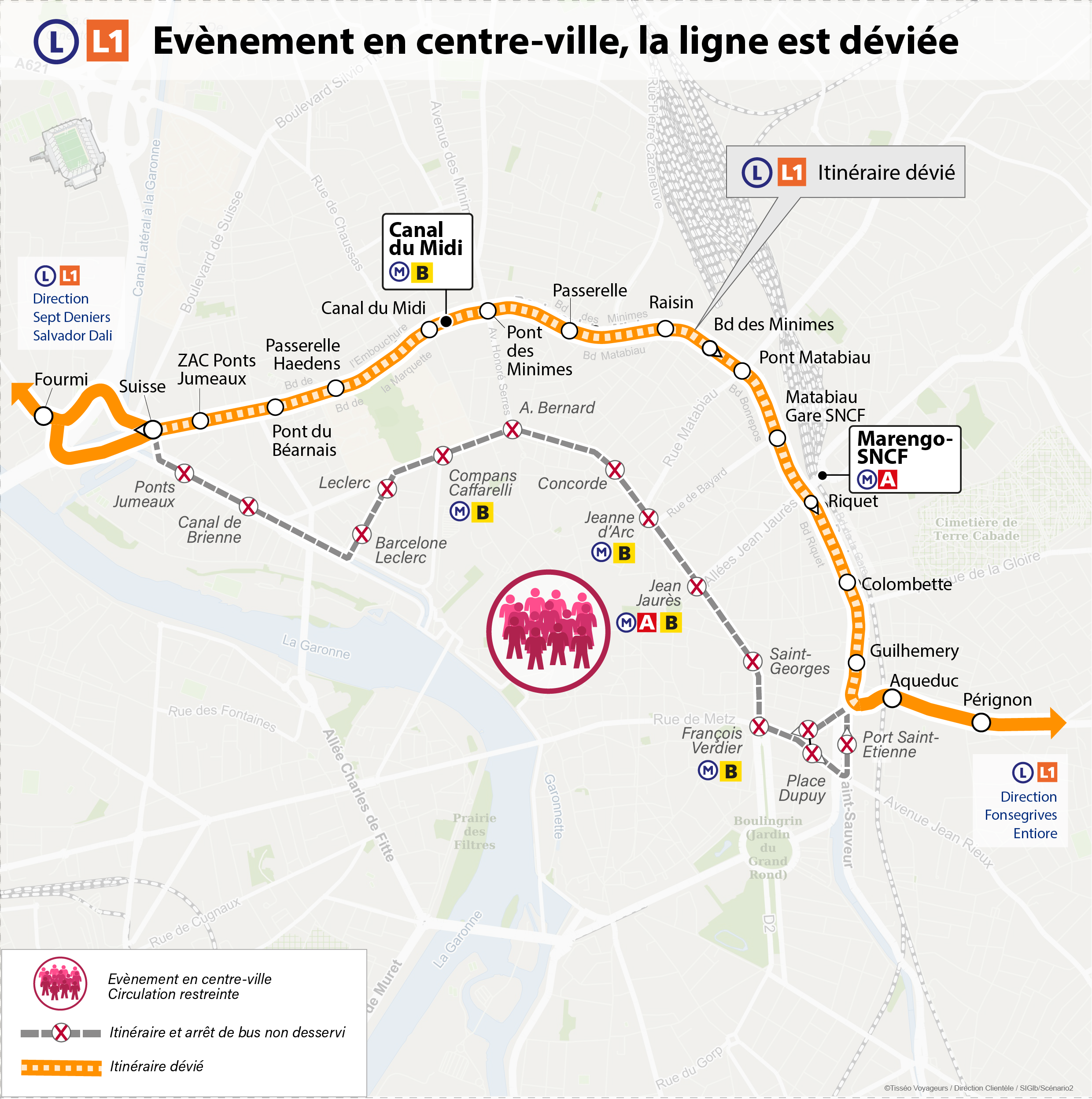 Le vendredi 28 novembre 2025 à partir de 15h00 : déviation ligne L1.